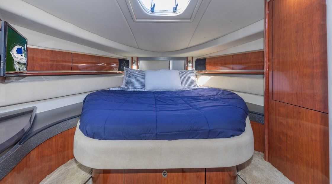 - The yacht offers a huge front deck with an extra thick sun pad for your comfort, excellent JL audio speakers with Bluetooth, plenty of seating, two staterooms, and two full bathrooms capable of sleeping seven people.